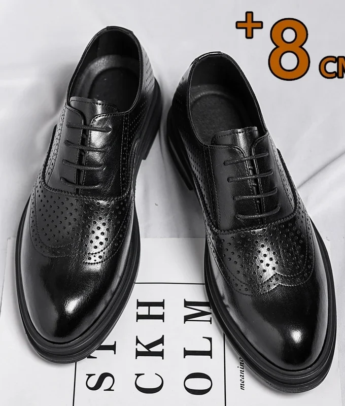 Men’s Dress Brogues Elevator Shoes Platform Breathable Casual Business Luxury Genuine Leather Heightening Shoes 6 8CM Taller Man