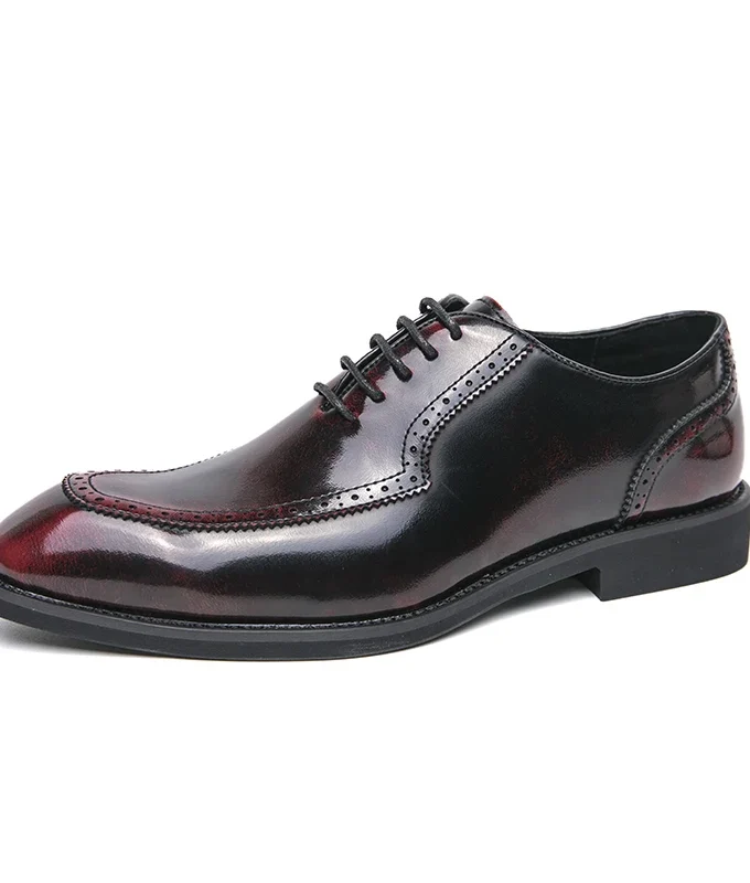 Italian Flat Mens Dress Shoes Luxury Genuine Leather Brand Handmade Quality Square Toe Laces Up New Business Party Social Shoes
