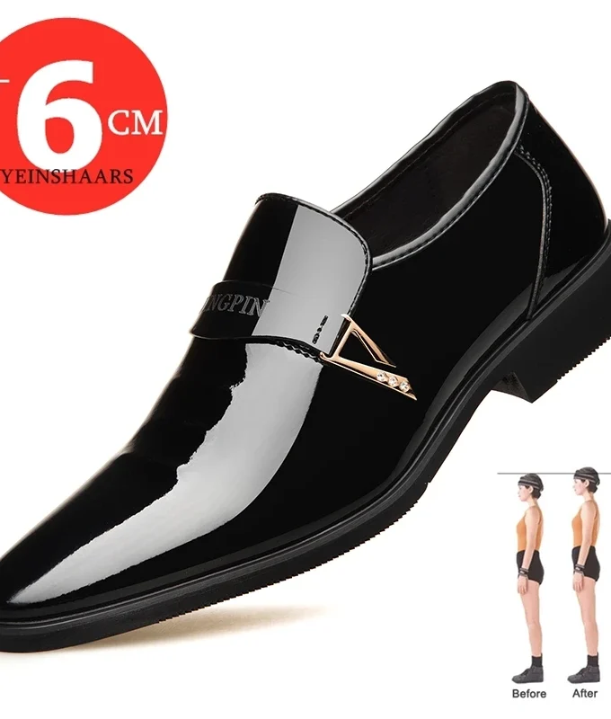 Man 6/8cm Newest Formal Derby Shoes Patent Leather Height Increase Men Dress Shoes Wedding Business Elevator Shoes Bright Upper