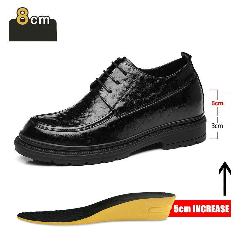 YEINSHAARS 3/6/8 Cm Elevator Men Dress Shoes Height Increase Cow Leather Men Formal Shoes Oxfords Business Men Suit Shoes Taller